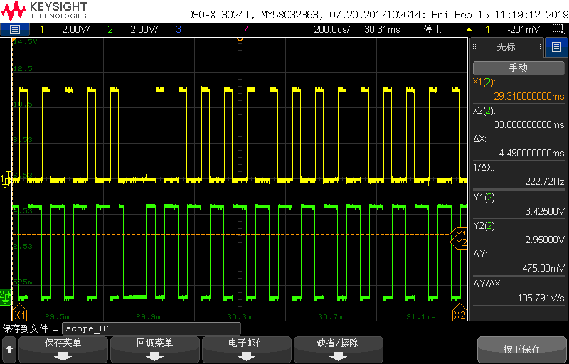 最近调试中遇到一个问题,请帮忙看下。我们DSP采用的是TMS320F28335,之前用有源晶振没出问题,同样的程序,现在改成无源晶振,结果DSP发出的PWM波出现了丢波的情况,而且是每隔4ms出现一次,PWM波丢波时的晶振波形正常,另外,出现丢波问题的端口是DSP的13、16、17、18、19、20脚,11脚发出的波形正常。附件是丢波后PWM波形,以及晶振波形,请参考