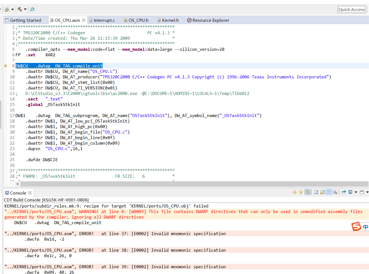 截图很清楚了,看告警是说你这个编译器不支持DW_TAG_compile_uint ,导致所有.dwcfa命令都发生错误!