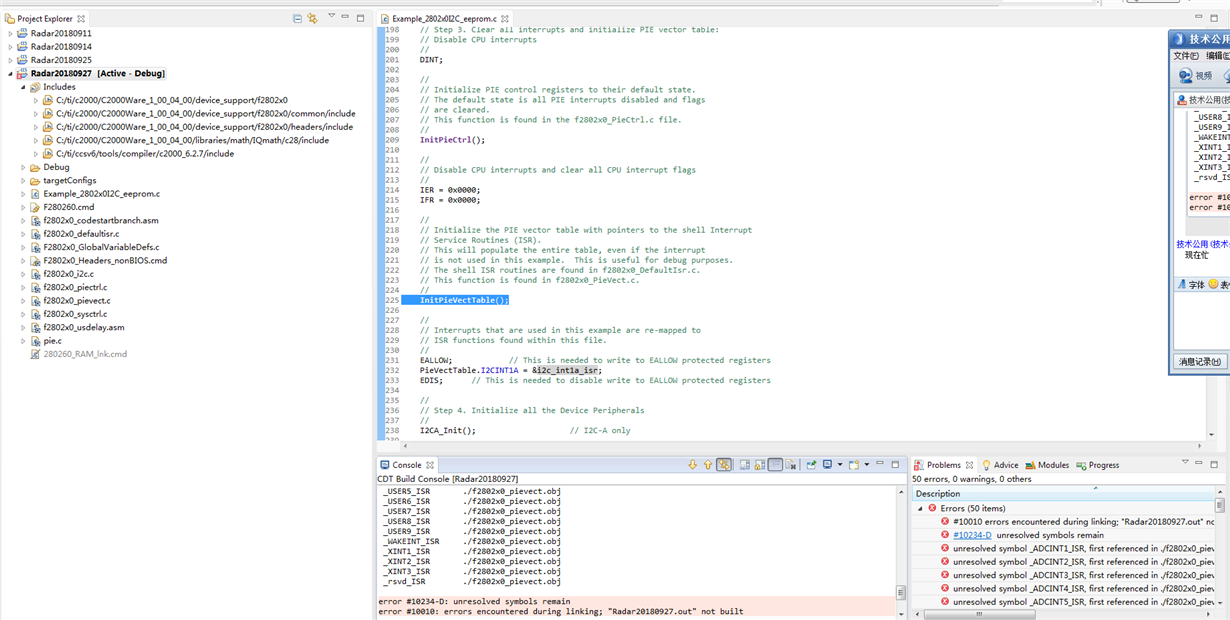 使用C2000Ware/device_support/f2802x0/examples/structs/i2c_eeprom.c的c文件做为源文件来调试i2c接口, 文件中 函数InitPieVectTable()里的内容不能识别。