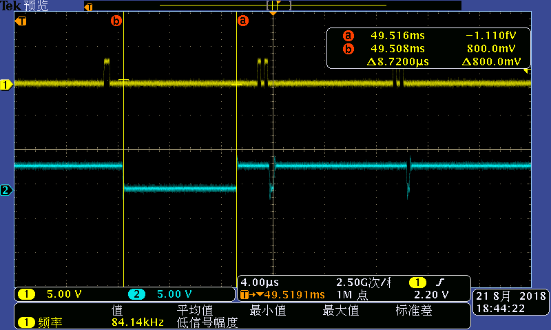 DELAY_US(10)对应的时间进阶20us。