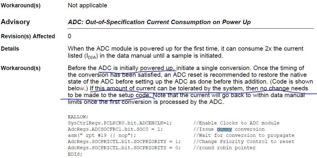AdcRegs.ADCSOC0CTL.bit.CHSEL = 4; //set SOC0 channel select to ADCINA4(dummy sample for rev0 errata workaround)