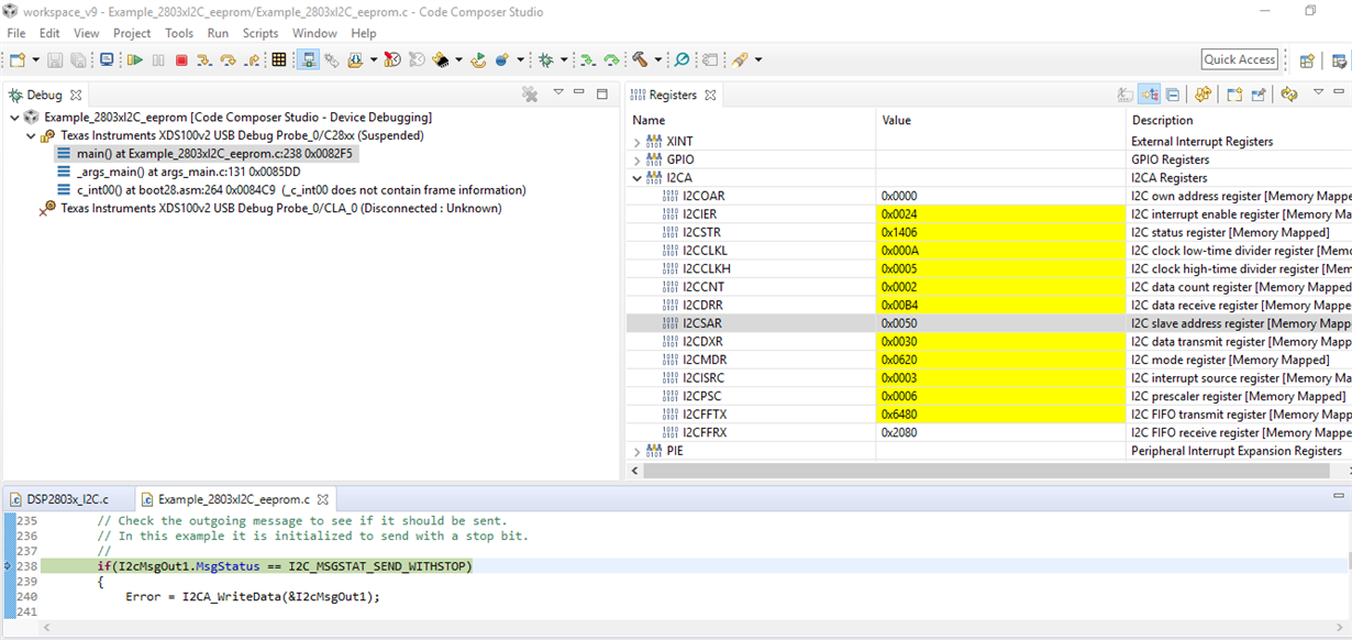 手边没有28027的板子,用28035测试的,例程是Example_2803xI2C_eeprom