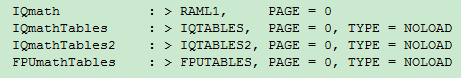 IQMath是因为它的内容在芯片的ROM区,需要通过cmd文件指定地址。