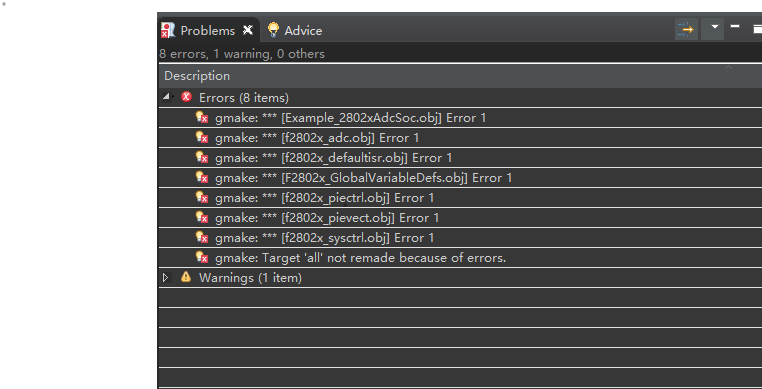 所有的C2000程序编译时都出现这种错误,刚刚还能用,但是一会所有的工程都出现了这种错误,不知是一不小心更改了哪里,还请在线的技术大佬帮忙解决一下。