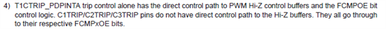 有一点不明,设置成GPIO 输入并没有使用该引脚的第二功能T1CTRIP_PDPINTA,为什么会触犯故障保护呢?