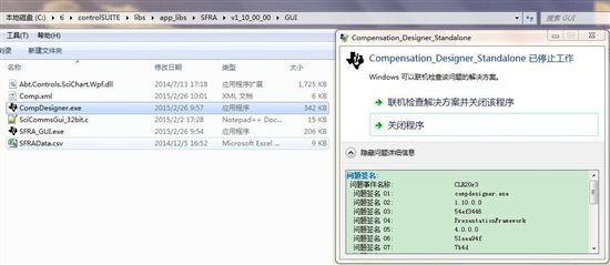 之后尝试在C盘的controlSUITE安装目录下去双击这个CompDesigner.exe文件,还是打不开(同一目录下的SFRA_GUI.exe却能够正常打开)