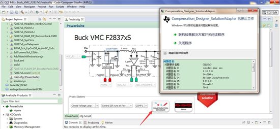 把controlSUITE中的一个工程复制到了CCS里去了,点开这个工程文件里的main.cfg之后,按照文档使用说明里的步骤,打开Compensation Designer这个GUI失败了,请问这个问题该怎么解决?问题截图如下