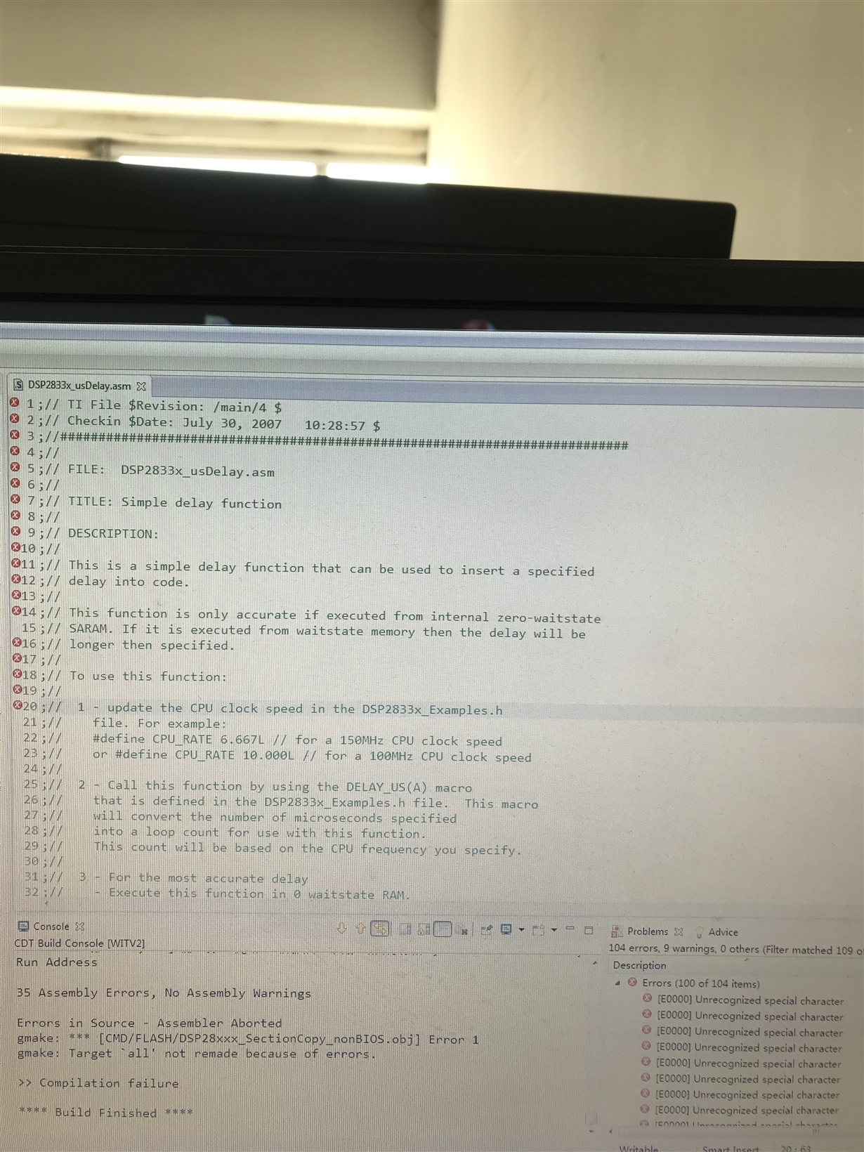 芯片型号F28335,CCS版本6.0,电脑WIN7 64位,项目拷贝到另外的电脑上能够编译成功,在这台电脑上三个.asm的文件都会报错,codestartbranch.asm sectioncopy_nonbios.asm usdelay.asm,当把这三个文件的代码完全删除后就能成功编译,请问这是什么原因导致的?